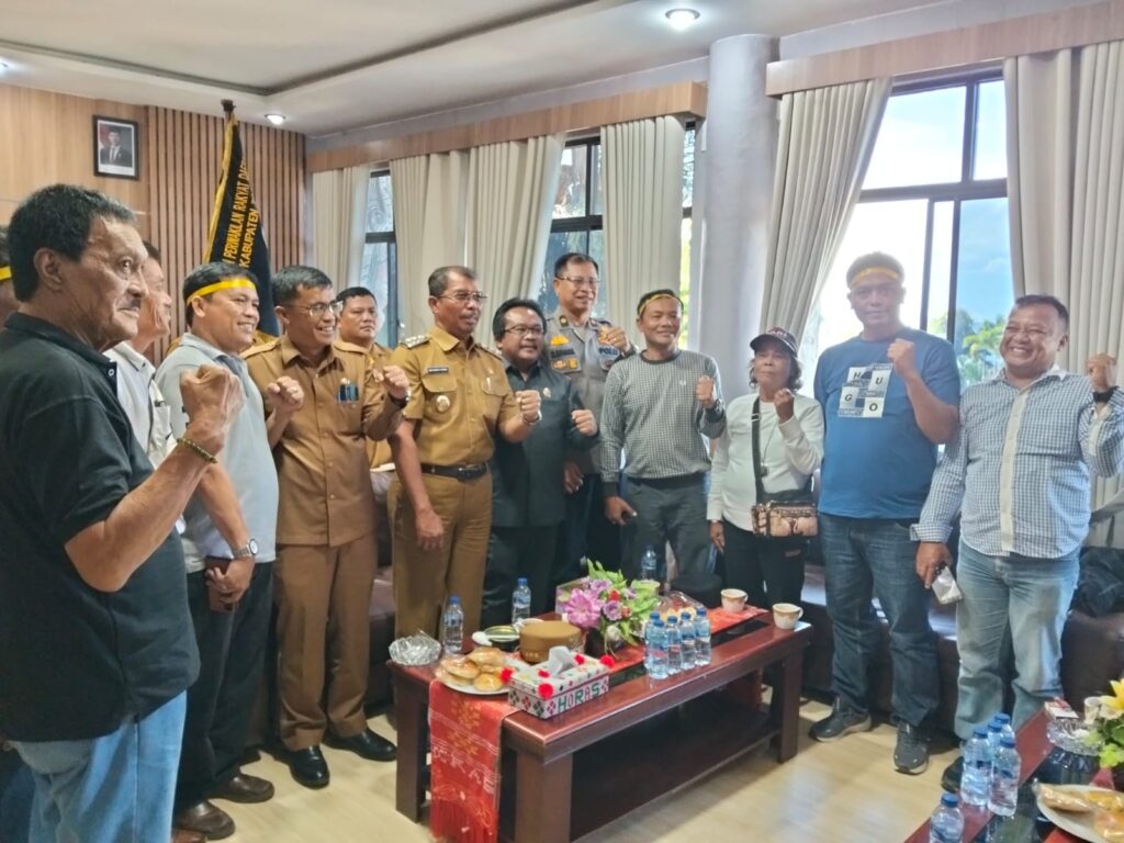 Bahara Sibuea bersama rekan juang saat menyerahkan surat pernyataan GMBB soal keberadaan KSPPM AMAN di Tapanuli Ketua Dewan, Wabup dan Sekda Toba serta Kabag Ops Polres Toba. Selanjutnya foto bareng.