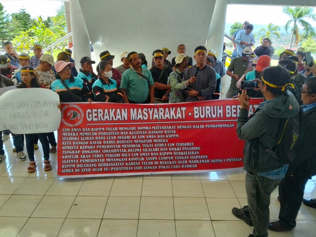 Bahara Sibuea dihadapan Wakil Bupati Toba, Audy Murphy Sitorus, dan Ketua DPRD Toba Franshendrik Tambunan serta Kabagops Kompol D Sinaga mengutarakan bahwa aksi mereka itu adalah aksi spontan. Ditegaskannya sudah berpuluh tahun ini pihak buruh berdiam diri menyaksikan provokasi Kelompok Studi dan Pengembangan Prakarsa Masyarakat (KSPPM) dan Aliansi Masyarakat Adat Nusantara (AMAN). “Kami pastikan bahwa sumber konflik yang terjadi selama ini di kawasan Tapanuli adalah KSPPM dan AMAN. Masyarakat pedesaan terpecah dua baik secara adat maupun keagamaan oleh karena kehadiran KSPPM dan AMAN”, kata Bahara.